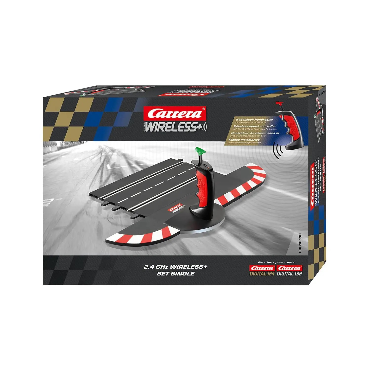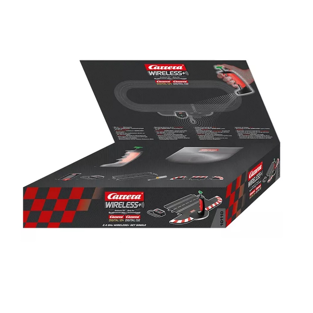Sulla pista DIGITAL 124 possono fare i loro giri fino a quattro piloti, sulla pista DIGITAL 132 anche fino a sei piloti. Per gare emozionanti con i tuoi amici, tutti hanno bisogno di un comando manuale. Il set wireless digitale singolo 132/124 è adatto per entrambe le corsie DIGITAL 132 e DIGITAL 124. Grazie alla moderna tecnologia a 2,4 GHz è possibile controllare la frequenza del veicolo indipendentemente dalla frequenza, senza interferenze e con precisione. Grazie alla portata fino a 15 metri, sei sempre nella parte della pista in cui c’è più azione. Che tu stia cambiando corsia, facendo una curva ripida o eseguendo drift mozzafiato – sei in mezzo alla pista. Con un tempo di gioco fino a 8 ore e un tempo di standby fino a 90 giorni, la batteria ricaricabile ai polimeri di litio fornisce una capacità sufficiente per le gare a lunga distanza. Il set comprende un regolatore di velocità WIRELESS+, un ricevitore WIRELESS+, una stazione di ricarica singola WIRELESS+, un adattatore, un elemento di regolazione del bordo, un terminale per il bordo esterno della curva (sinistra e destra), una batteria ricaricabile ai polimeri di litio e le istruzioni per l’uso. Ideale per gare emozionanti con i tuoi amici.