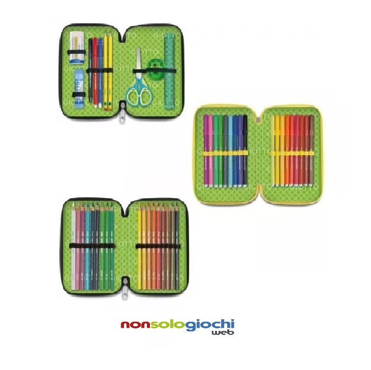 Composti da tre spaziosi scomparti, contengono tutto il necessario per la scuola.