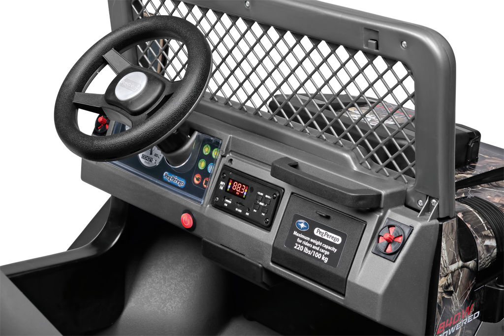 Amato dai bambini, invidiato dagli adulti, il grintoso fuoristrada a 2 posti con l’inconfondibile pattern Realtree™, stupisce per la guida silenziosa su tutti i terreni. I due sedili sono indipendenti, regolabili e il rivestimento in ecopelle offre maggiore comfort.