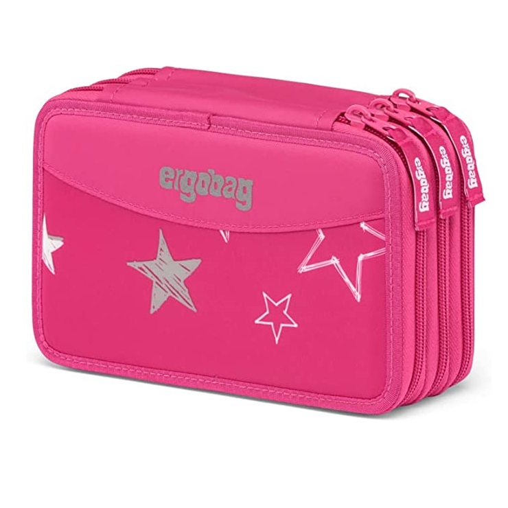 Ergobag portapenne astuccio triplo StarlightBear. Niente più caos di matite! Nel maxi astuccio per matite tutti gli utensili per la scuola trovano il loro posto. È riempito con 40 pezzi. I tre scomparti contengono, tra le altre cose, 18 pennarelli e 18 pennarelli colorati. Materiale: tessuto principale: 100% poliestere, rivestimento: 100% poliestere, è realizzata con 0,9 bottiglie in PET riciclate (0,5 l).