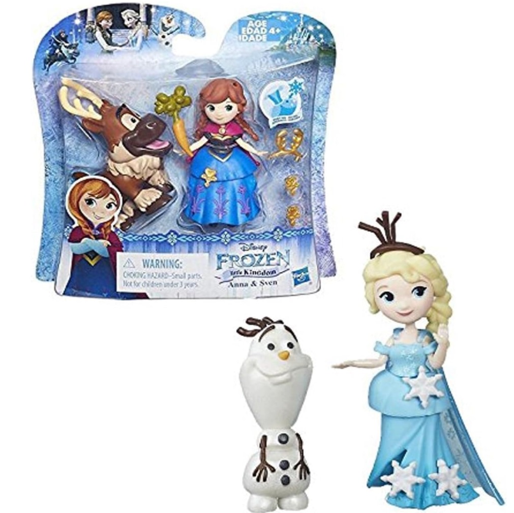 Include Alsa e i suoi accessori, Sven e 4 snap in e 1 accessorio. Le bambole sono alte tra i 6 e gli 8 cm.