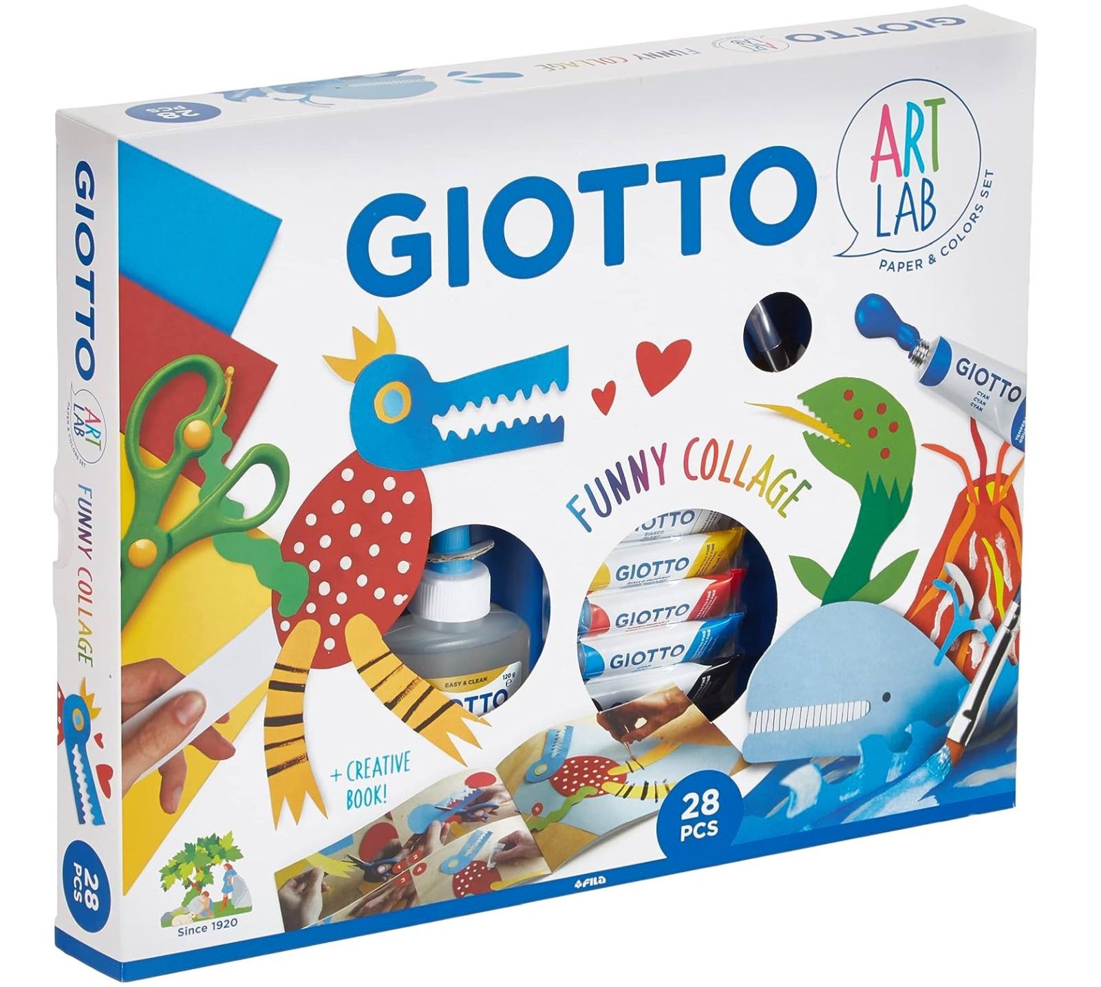 La fantasia si compone con GIOTTO ART LAB FUNNY COLLAGE.Crea e gioca con la nuova linea supercreativa di GIOTTO: ART LAB Paper&Colors. Con il Set FUNNY COLLAGE si creano balene pop up, piante carnivore e marionette grazie all’album Giotto Kids con cartoncini colorati, tempere, colla, pennello e forbicine e il creative book. Creare mondi e scenari magici non è mai stato così facile!Contenuto: 1 album Giotto Kids A4 carta colorata 120g/m2, 1 Giotto Collage 120 g, 5 tubetti Giotto Tempera da 10 ml, 1 pennello Giotto Taklon n. 10, 1 forbicina, 1 creative book
