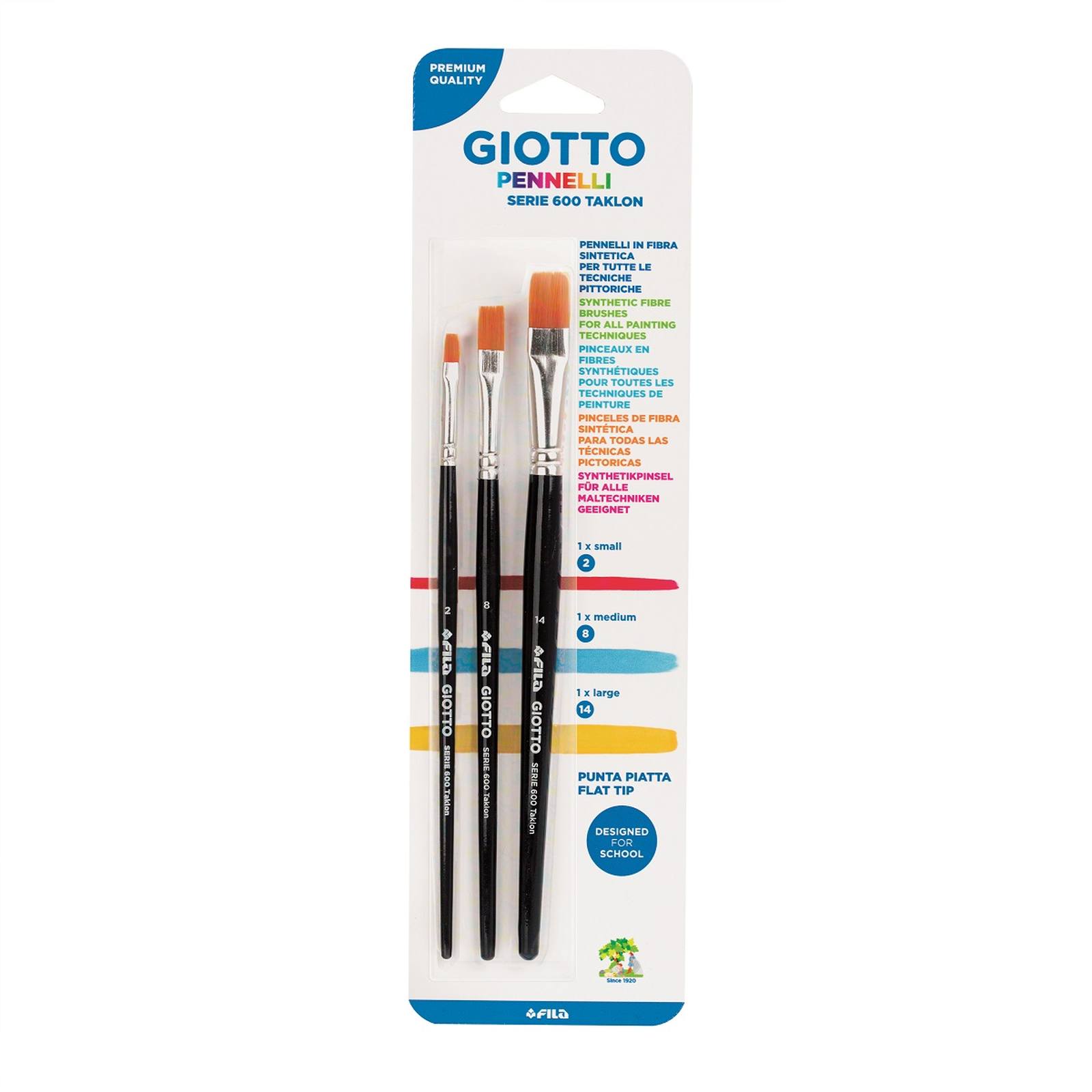 Giotto pennelli punta piatta blister con 3 pennelli assortiti nel n. 2 – 8 -14