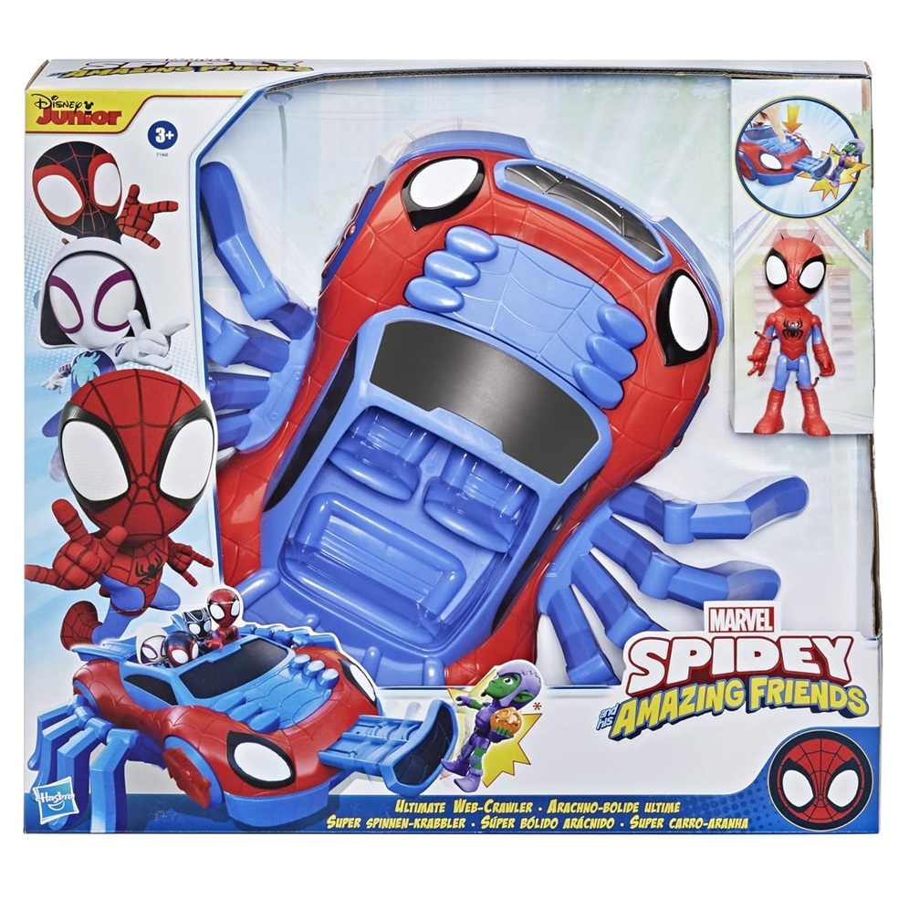 Hasbro Marvel Spidey e i Suoi Fantastici Amici – Ultimate Web – Crawler, include veicolo spara colpi e un personaggio da 10 cm, per bambini dai 3 anni in su – Inconfondibile nel design e nei colori, il mitico veicolo di Spidey ospita fino a 4 eroi per portare tutta la squadra dove il pericolo incombe! Con otto gambe che si agitano mentre è in movimento e un dispositivo spara – ragnatele per tenere a distanza i malintenzionati, questo veicolo multiuso diventerà il tuo mezzo preferito! – Barcode , codice ean 5010993853854